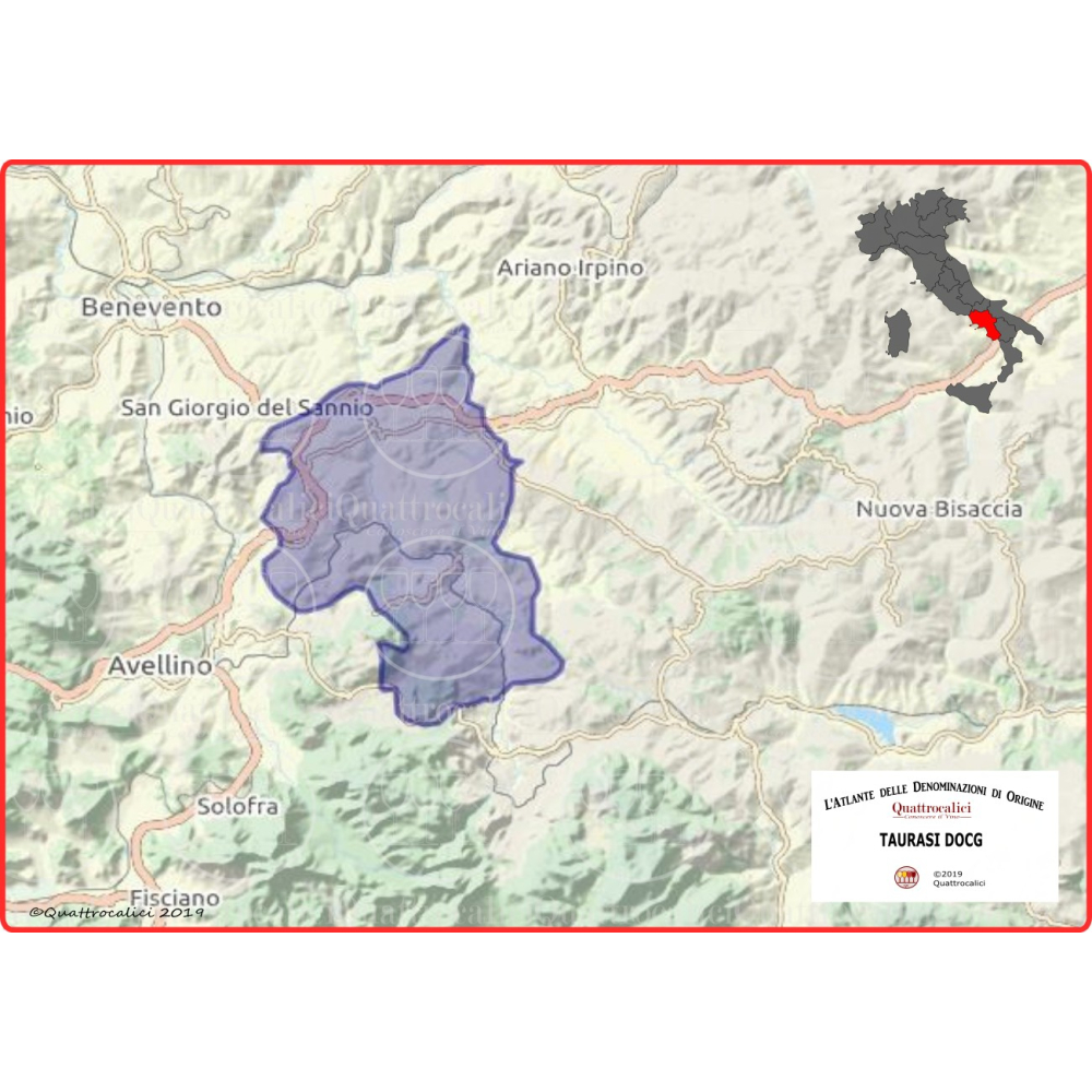De druif voor de prachtige Taurasi wijnen is Aglianico - een antiek druivenras dat voornamelijk voorkomt in Campania, maar ook in Basillicata (Aglianico del Vulture DOCG) en in Puglia. Taurasi wordt ook wel de 'Barolo van het Zuiden' genoemd, deze status heeft de wijn te danken aan het potentieel dat de wijnen hebben. Dankzij de goed aanwezige zuren en stevige tannines leent Taurasi zich uitstekend om te ouderen. Taurasi wijnen ondergaan een verplichte rijping van 3 jaar, waarvan minimaal 24 in houten vaten.